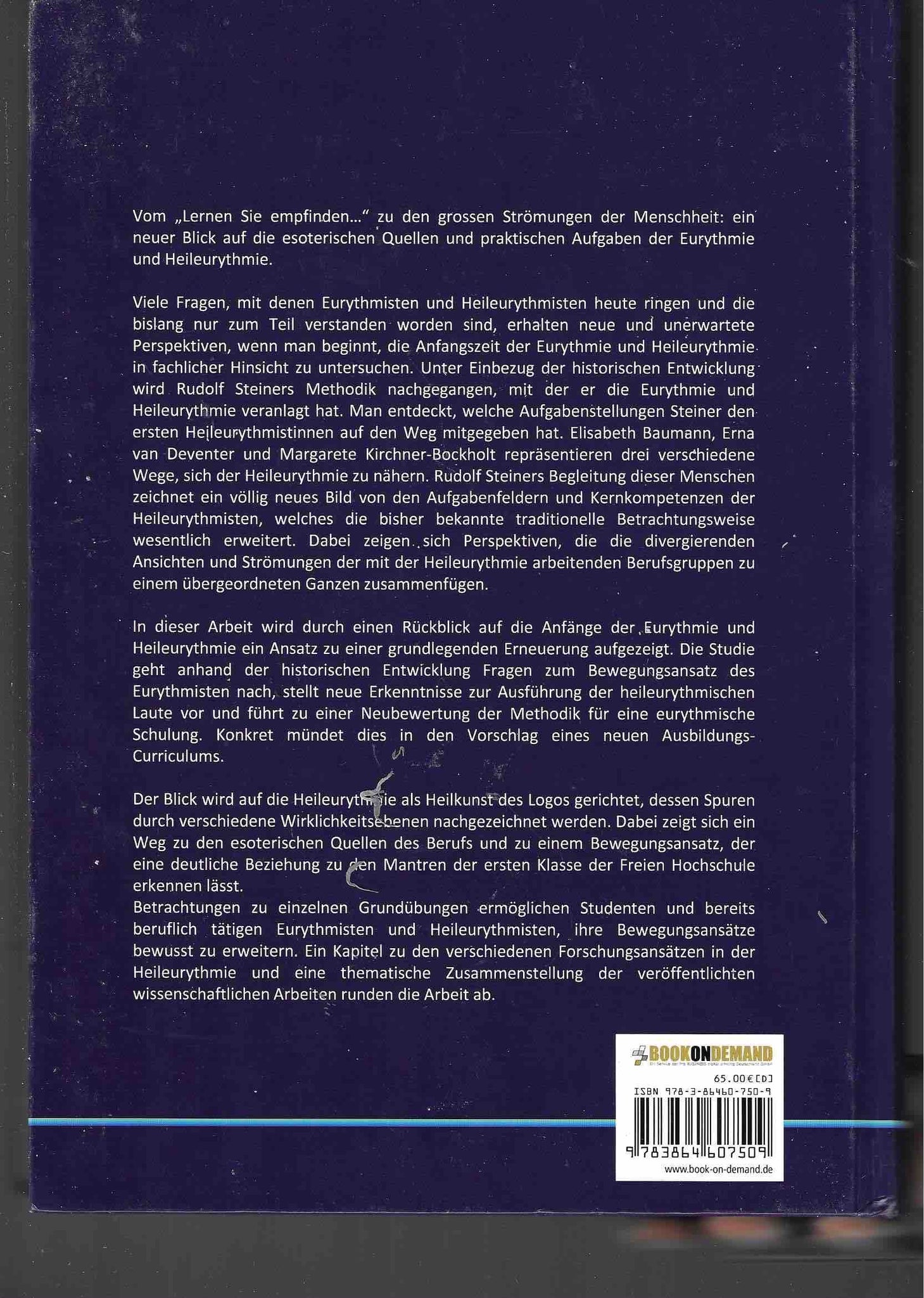 Vom "Lernen Sie empfinden ..." zu den grossen Strömungen der Menschheit: ein neuer Blick auf die esoterischen Quellen und praktischen Aufgaben der Eurythmie und Heileurythmie. Viele Fragen, mit denen Eurythmisten und Heileurythmisten heute ringen und die bislang nur zum Teil verstanden worden sind, erhalten neue und unerwartete Perspektiven, wenn man beginnt, die Anfangszeit der Eurythmie und Heileurythmie in fachlicher Hinsicht zu untersuchen. Unter Einbezug der historischen Entwicklung wird Rudolf Steiners Methodik nachgegangen, mit der er die Eurythmie und Heileurythmie veranlagt hat. Man entdeckt, welche Aufgabenstellungen Steiner den ersten Heileurythmistinnen auf den Weg mitgegeben hat. Elisabeth Baumann, Erna van Deventer und Margarete Kirchner-Bockholt repräsentieren drei verschiedene Wege, sich der Heileurythmie zu nähern. Rudolf Steiners Begleitung dieser Menschen zeichnet ein völlig neues Bild von den Aufgabenfeldern und Kernkompetenzen der Heileurythmisten, welches die bisher bekannte traditionelle Betrachtungsweise wesentlich erweitert. Dabei zeigen sich Perspektiven, die die divergierenden Ansichten und Strömungen der mit der Heileurythmie arbeitenden Berufsgruppen zu einem übergeordneten Ganzen zusammenfügen. In dieser Arbeit wird durch einen Rückblick auf die Anfänge der Eurythmie und Heileurythmie ein Ansatz zu einer grundlegenden Erneuerung aufgezeigt. Die Studie geht anhand der historischen Entwicklung Fragen zum Bewegungsansatz des Eurythmisten nach, stellt neue Erkenntnisse zur Ausführung der heileurythmischen Laute vor und führt zu einer Neubewertung der Methodik für eine eurythmische Schulung. Konkret mündet dies in den Vorschlag eines neuen Ausbildungs-Curriculums. Der Blick wird auf die Heileurythmie als Heilkunst des Logos gerichtet, dessen Spuren durch verschiedene Wirklichkeitsebenen nachgezeichnet werden. Dabei zeigt sich ein Weg zu den esoterischen Quellen des Berufs und zu einem Bewegungsansatz, der eine deutliche Beziehung zu den Mantren der ersten Klasse der Freien Hochschule erkennen lässt. Betrachtungen zu einzelnen Grundübungen ermöglichen Studenten und bereits beruflich tätigen Eurythmisten und Heileurythmisten, ihre Bewegungsansätze bewusst zu erweitern. Ein Kapitel zu den verschiedenen Forschungsansätzen in der Heileurythmie und eine thematische Zusammenstellung der veröffentlichten wissenschaftlichen Arbeiten runden die Arbeit ab.