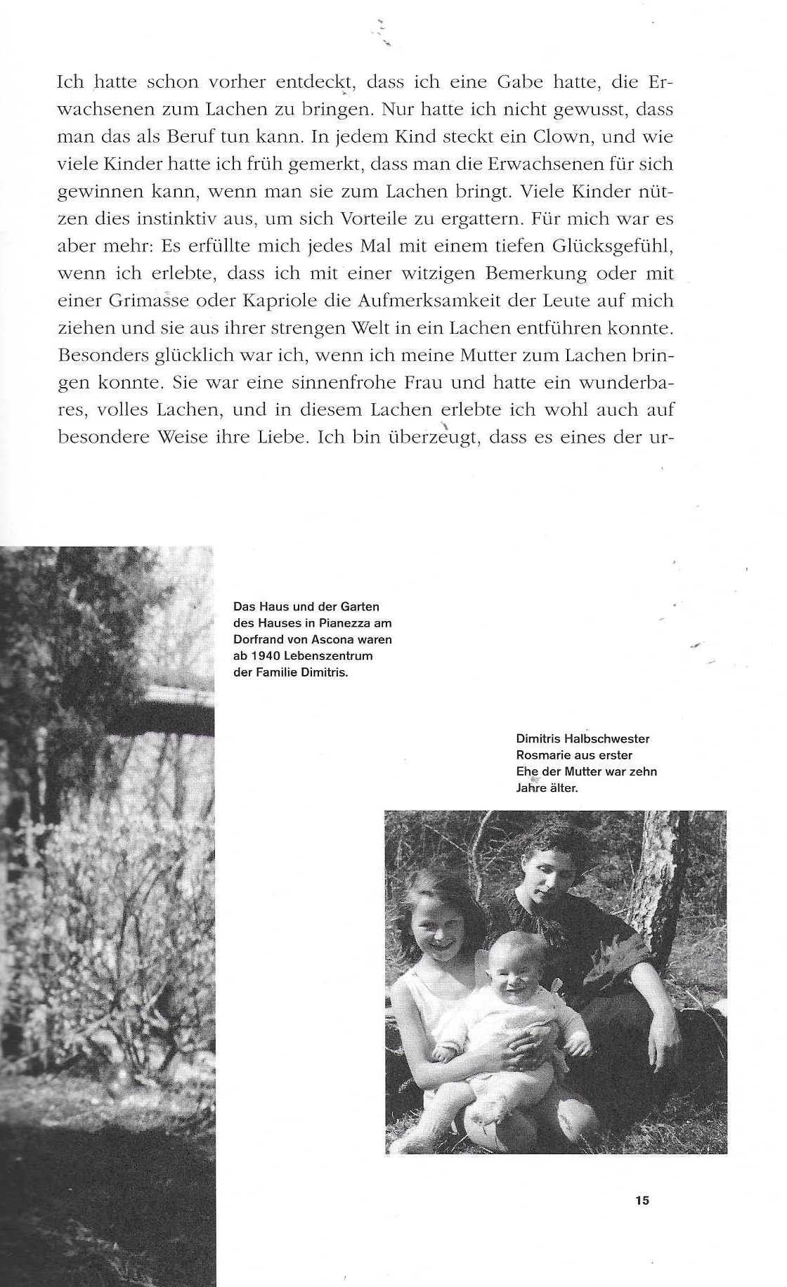 Autobiographie des berühmtesten lebenden Schweizer Clown. Als der siebenjährige Dimitri in einer Vorstellung des Zirkus Knie erfuhr, dass Clown sein ein Beruf ist, wusste er: Das ist es, was ich werden will! Der Clown war allerdings schon vorher in ihm erwacht. Seit er sich erinnern kann, war es sein grösstes Glück, Menschen zum Lachen zu bringen. Der Clown, Musiker, Artist, Regisseur, Zeichner und Lehrer Dimitri könne nur eins nicht, behauptet er: schreiben. Deshalb hat er sich für seine Autobiografie die Feder des Schriftstellers Hanspeter Geschwend ausgeliehen.