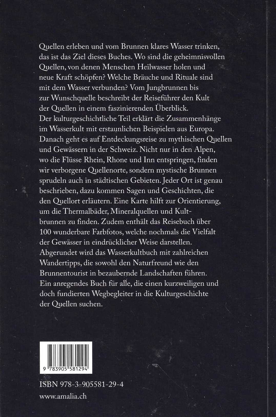 Quellen erleben und vom Brunnen klares Wasser trinken, das ist das Ziel dieses Buches. Wo sind die geheimnisvollen Quellen, von denen Menschen Heilwasser holen und neue Kraft schöpfen? Welche Bräuche und Rituale sind mit dem Wasser verbunden? Vom Jungbrunnen bis zur Wunschquelle beschreibt der Reiseführer den Kult der Quellen in einem faszinierenden Überblick. Der kulturgeschichtliche Teil erklärt die Zusammenhänge im Wasserkult mit erstaunlichen Beispielen aus Europa. Danach geht es auf Entdeckungsreise zu mythischen Quellen und Gewässern in der Schweiz. Nicht nur in den Alpen, wo die Flüsse Rhein, Rhone und Inn entspringen, finden wir verborgene Quellenorte, sondern mystische Brunnen sprudeln auch in städtischen Gebieten. Jeder Ort ist genau beschrieben, dazu kommen Sagen und Geschichten, die den Quellort erläutern. Eine Karte hilft zur Orientierung, um die Thermalbäder, Mineralquellen und Kultbrunnen zu finden. Zudem enthält das Reisebuch über 100 wunderbare Farbfotos, welche nochmals die Vielfalt der Gewässer in eindrücklicher Weise darstellen. Abgerundet wird das Wasserkultbuch mit zahlreichen Wandertipps, die sowohl den Naturfreund wie den Brunnentourist in bezaubernde Landschaften führen. Ein anregendes Buch für alle, die einen kurzweiligen und doch fundierten Wegbegleiter in die Kulturgeschichte der Quellen suchen.