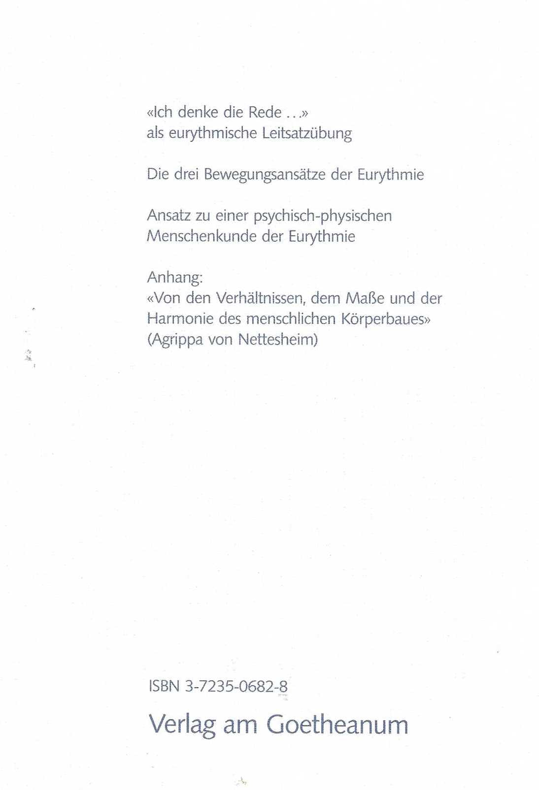 'Ich denke die Rede …' begleitet den Eurythmisierenden täglich zum Einstimmen seines Bewegungs-Instruments. Die Folge der sechs Stellungen ist eine von Rudolf Steiner erneuerte Mysterienübung, die zu einer Gestaltmeditation wird. Das Verhältnis von Wille und Wahrnehmung in der Gestalt wird 'fühlend-wahrnehmend' erfahren. 'Ich denke die Rede …' als Leitsatzübung genommen, wird zu einem ganzheitlichen Schulungsweg. Im Durchgang der Stellungen wird die fühlende, wollende und intentionale Seele durch die Leiblichkeit zum Instrument des Wortes erhoben. Die Kunstmittel 'Bewegung – Gefühl – Charakter' werden durch die Übung vorbereitet. Gedichtbeispiele lassen die dadurch mögliche Gestaltungsdifferenzierung lebendig werden. Als Anhang ist der Originaltext des Agrippa von Nettesheim aus seiner 'De Occulta Philosophia' aufgenommen.